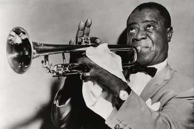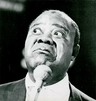 Der amerikanische Jazz -Trompeter, Cornetist, Sänger und Bandleader mit dem Spitznamen "Satchmo" oder "Pops". Zusammen mit [A = Fletcher Henderson] war er der Anstifter der zweiten Jazzwelle Swing.